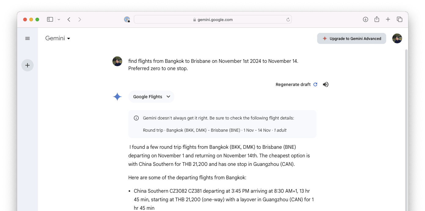 Integrations: Find personal information from Google Flights and Hotels, YouTube, Google Drive, Gmail, Google Docs, Google Maps