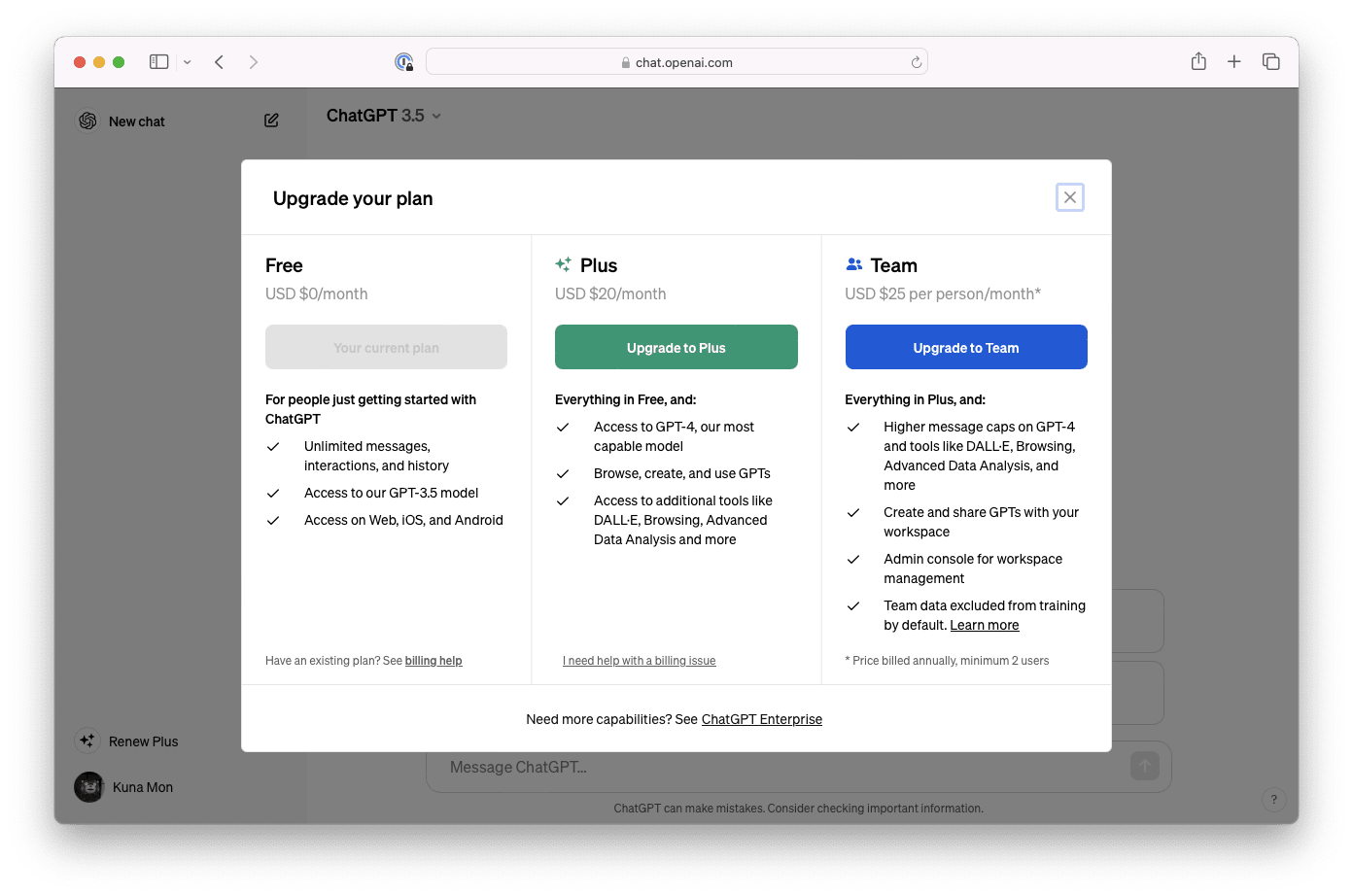 Price: Free (with unlimited access, it costs $20 a month, and you will get access to GPT-4 model, unlimited GPT-4o usage quota, and DALL-E 3)