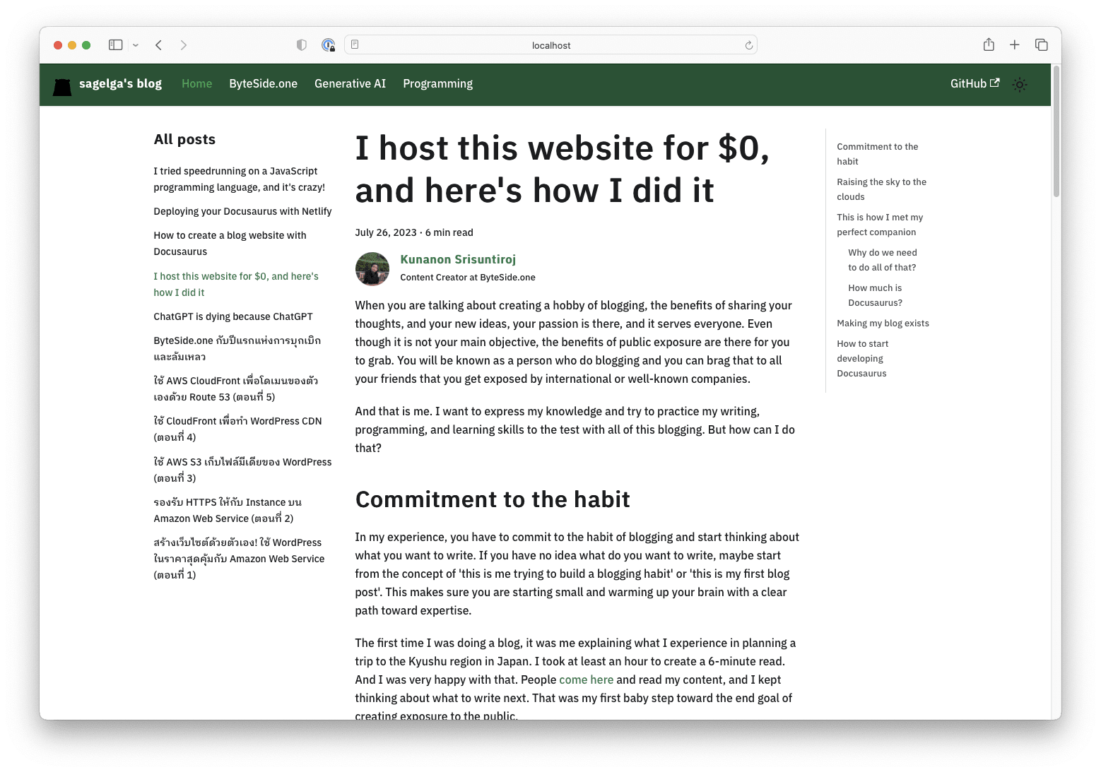 If you are interested in creating a blog with Docusaurus, read it here: https://blog.sagelga.com/how-to-docusaurus.